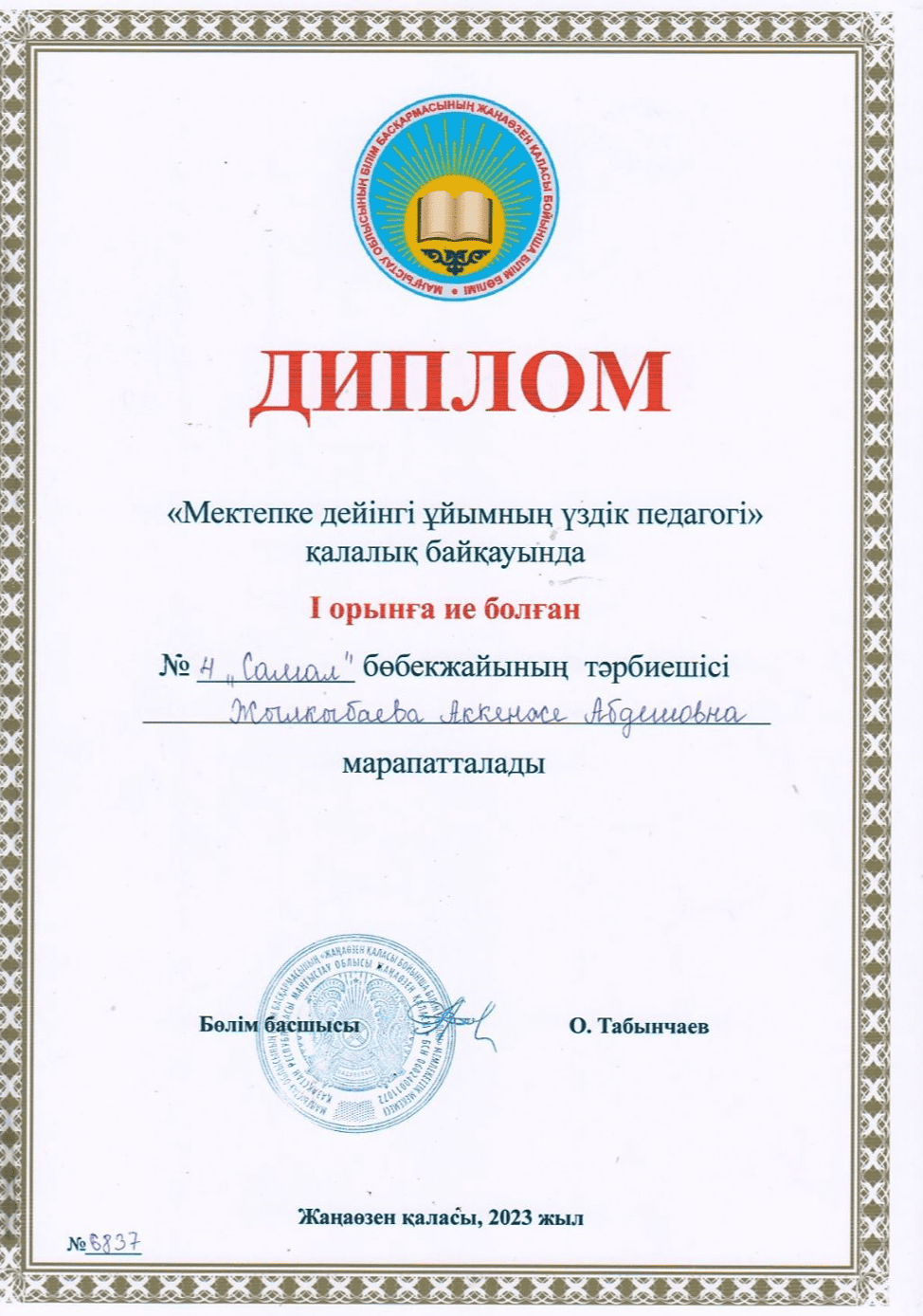 Маңғыстау облысының білім басқармасының Жаңаөзен қаласы бойынша білім бөлімі